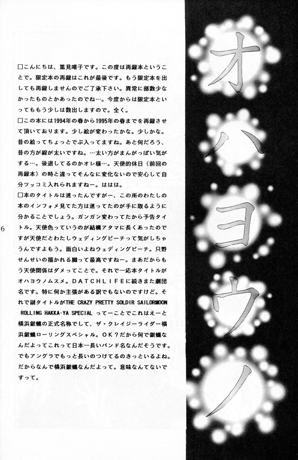 Ohayou no Musume Some stories revolving around the Summer time. Features the inner senshi, Chibiusa, and Hotaru, and it contains some nudity. Donated by Talesofwings. Group/Circle: Hakka Ya, Yuiko Tokumi Genre: Comedy, Mature Year: 1995 Choose a file type } jpg } pdf } mobi