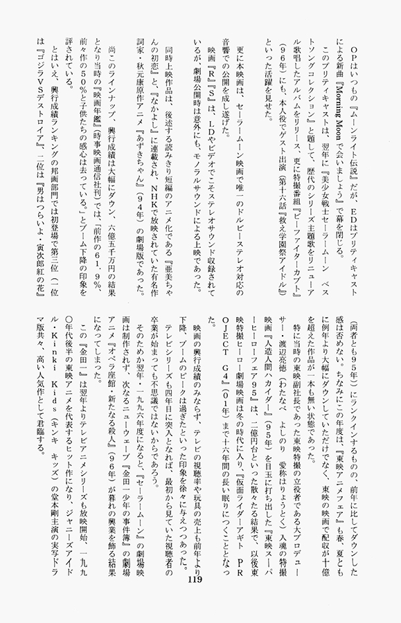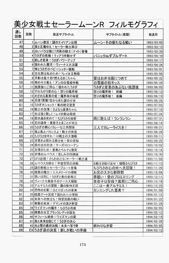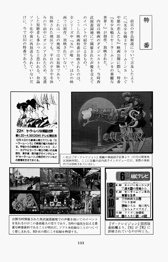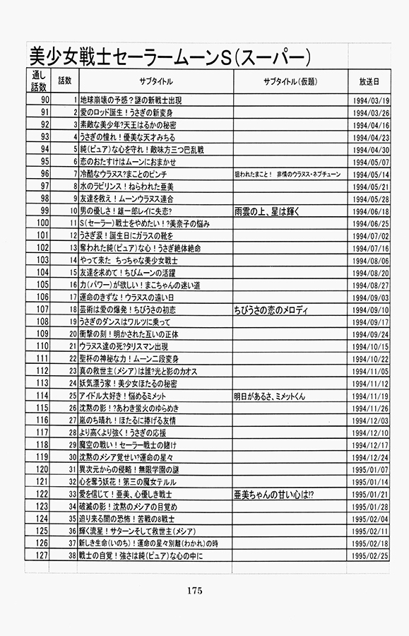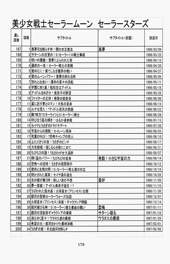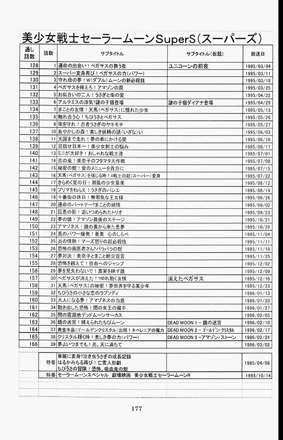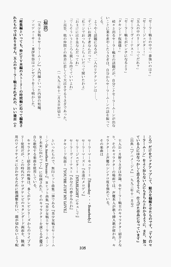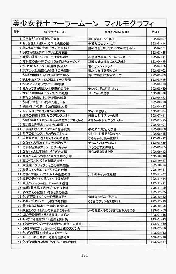 For fans of the Sailor Moon musicals, live-action series, and 1992 anime, there are sections devoted to them that are just as detailed, and just as useful. It is a shame that this book is only available in Japanese, because it is a cornerstone of information for the Sailor Moon fandom. I wish I had the time to translate it into English myself. (Maybe somebody out there will consider hiring me to do this?)