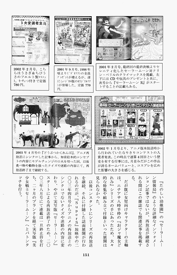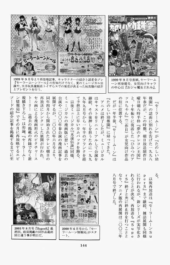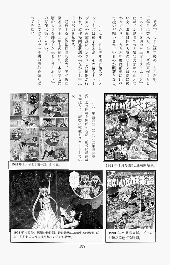 I personally find this book extremely valuable, especially in terms of my personal interest in collecting back issues of Japanese magazines such as Nakayoshi, Nakayoshi Deluxe, and RunRun in order to own all of the original serializations of Sailor Moon, Codename: Sailor V, and all of the other works of Naoko Takeuchi. This book, published almost two years after I began my own research, features more information and leads on what I needed than I was able to obtain on my own.
