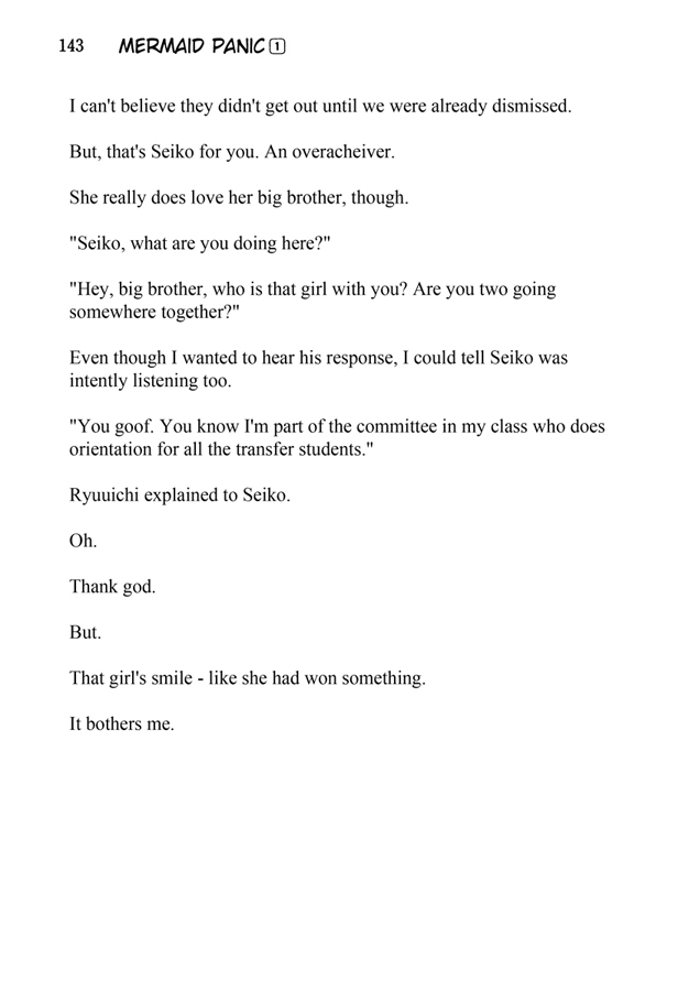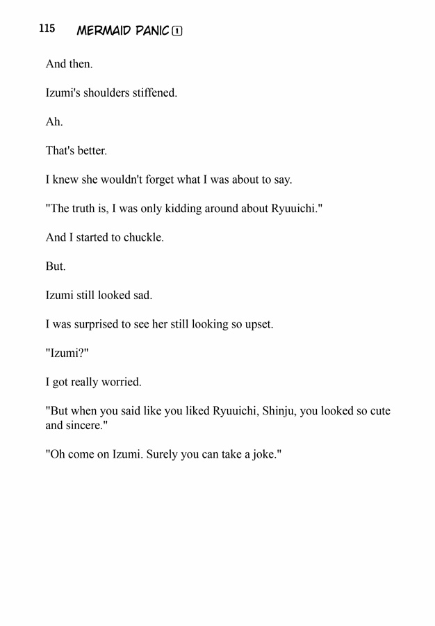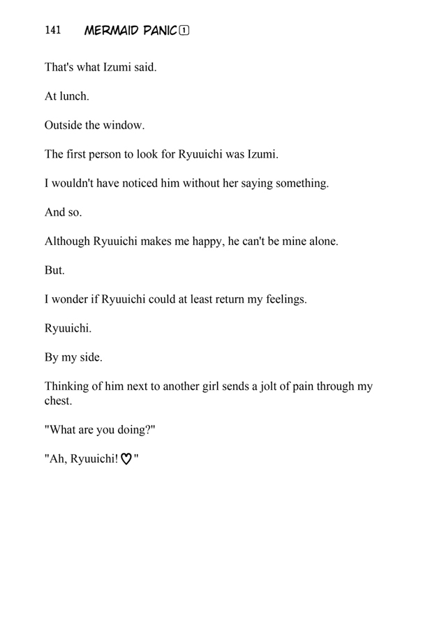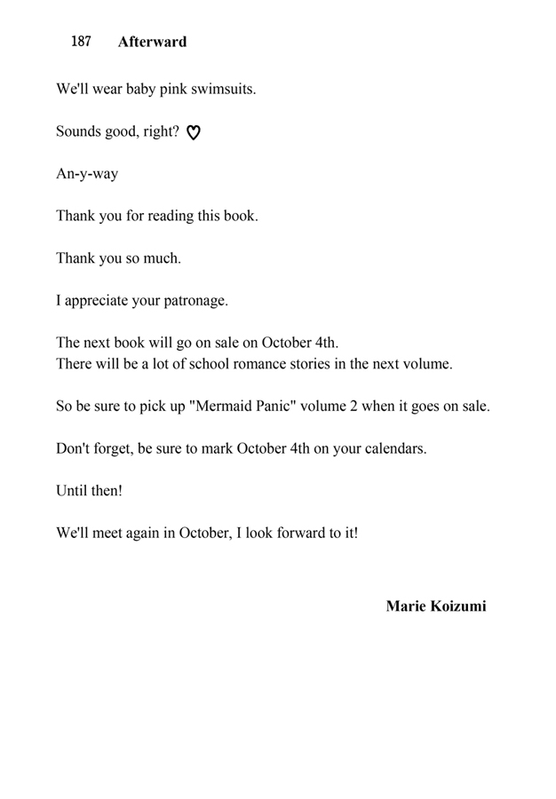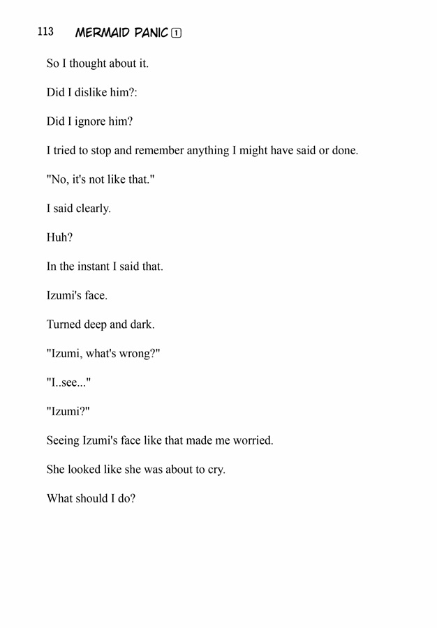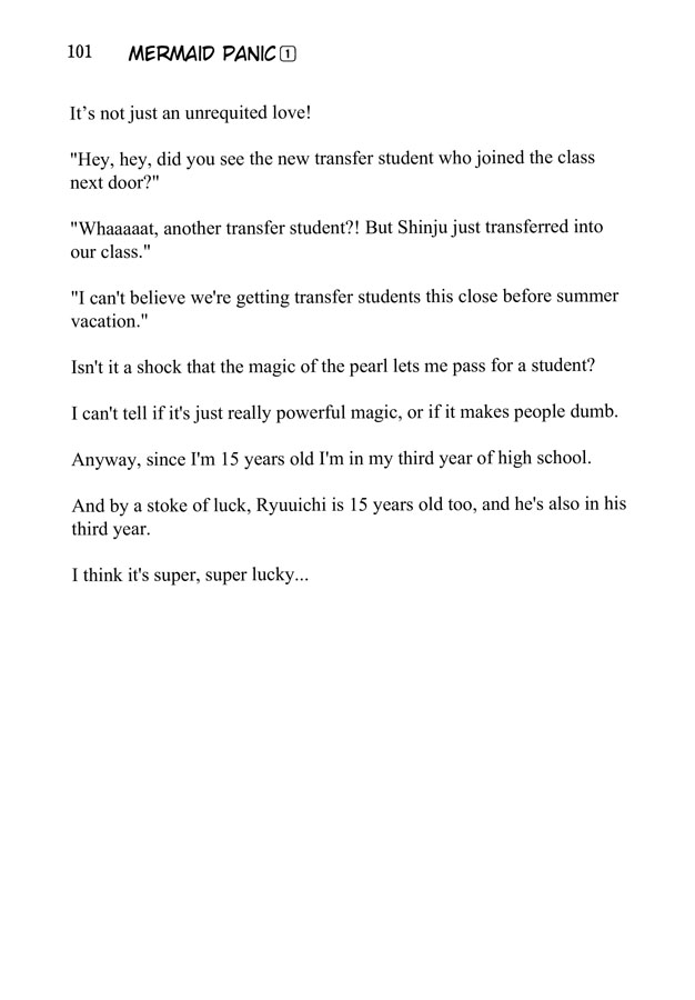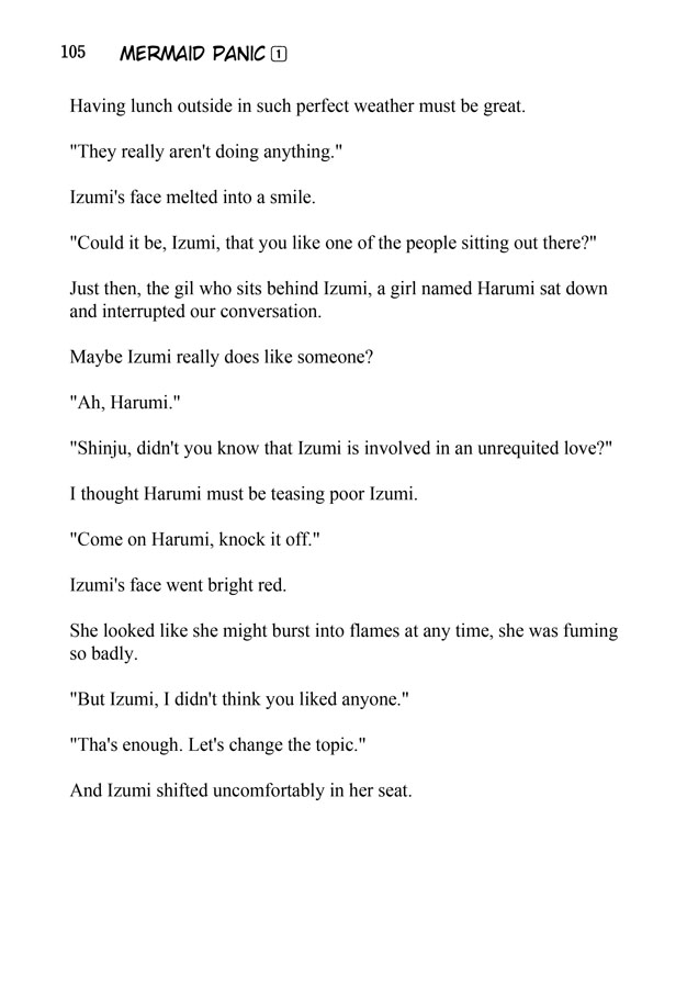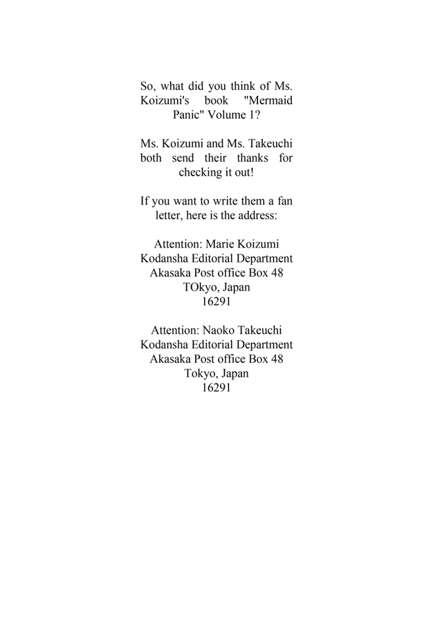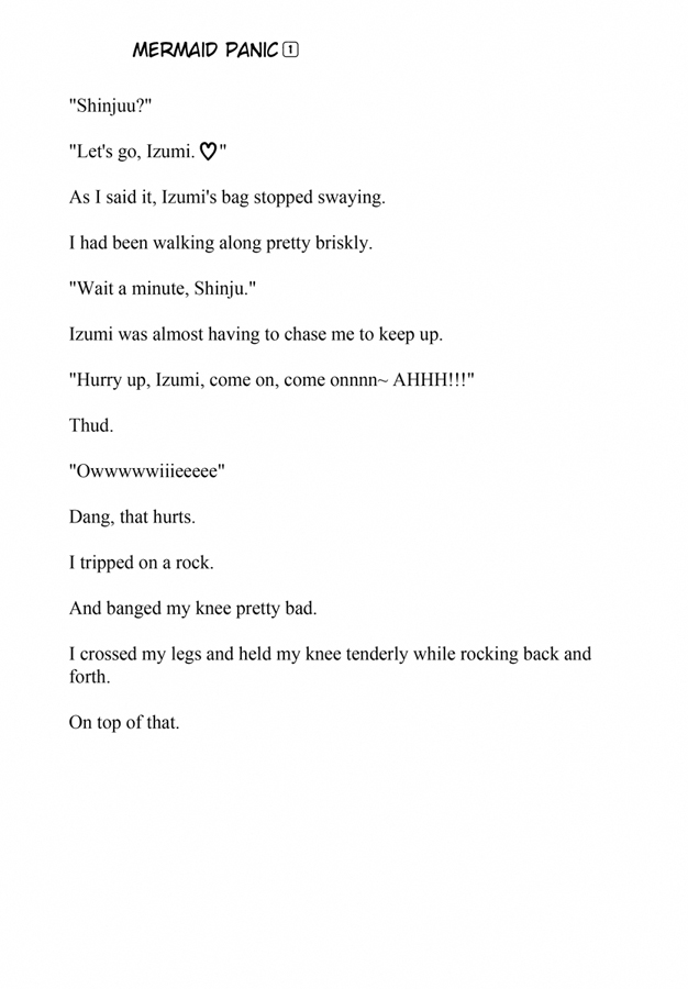 This is an English translation, or scanlation of Mermaid Panic volume 1 – a joint project between writer Marie Koizumi and illustrated by Naoko Takeuchi.